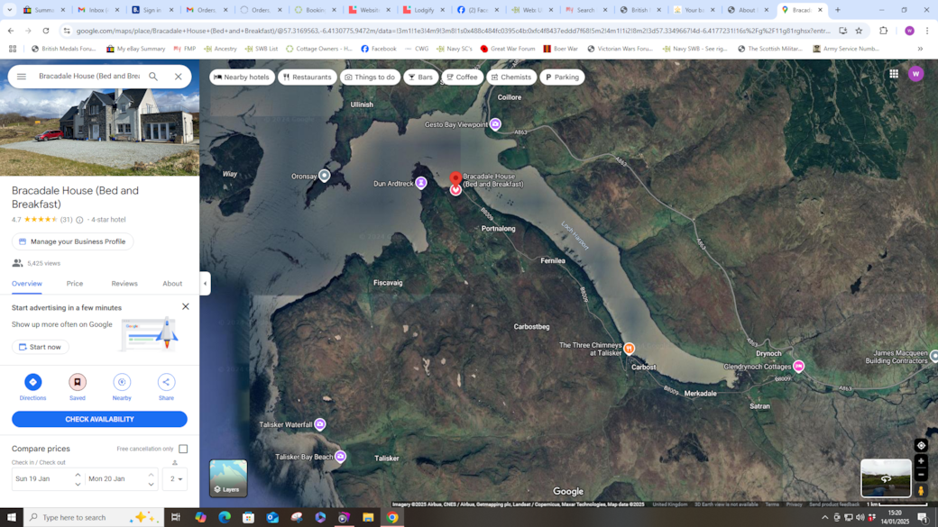 Facing on to croft land at the rear of the house this bedroom is comfortably furnished and decorated in a Scottish theme with a fitted wardrobe/desk, 2 single beds with quality bedding, smart TV, USB point, hairdryer, bedside lamp, tea and coffee making facilities. In the large en-suite wet roomyou will find a heated towel rail, toiletries and nice fluffy towels.